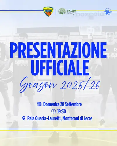 La ItalBio Energy NP Monteroni è lieta di annunciare la presentazione ufficiale della società (della squadra senior militante nel campionato di...
