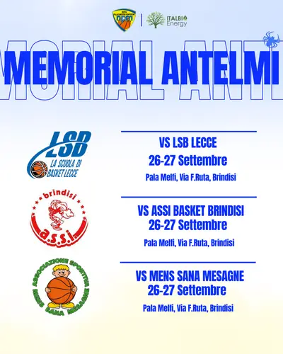 La società Assi Brindisi annuncia la quarta edizione del torneo quadrangolare Memorial “G. Antelmi” che si terrà nei giorni 26-27...